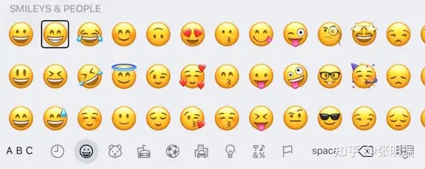 到今天为止,已经有三千多个emoji被设计出来,这个数字每年都在增长。我们在输入emoji的时候,会进入一个类似列表一样的界面,几十个emoji排成排,大眼一扫就能知道选择哪一个。键盘也会对这些表情进行分类,来方便查找。