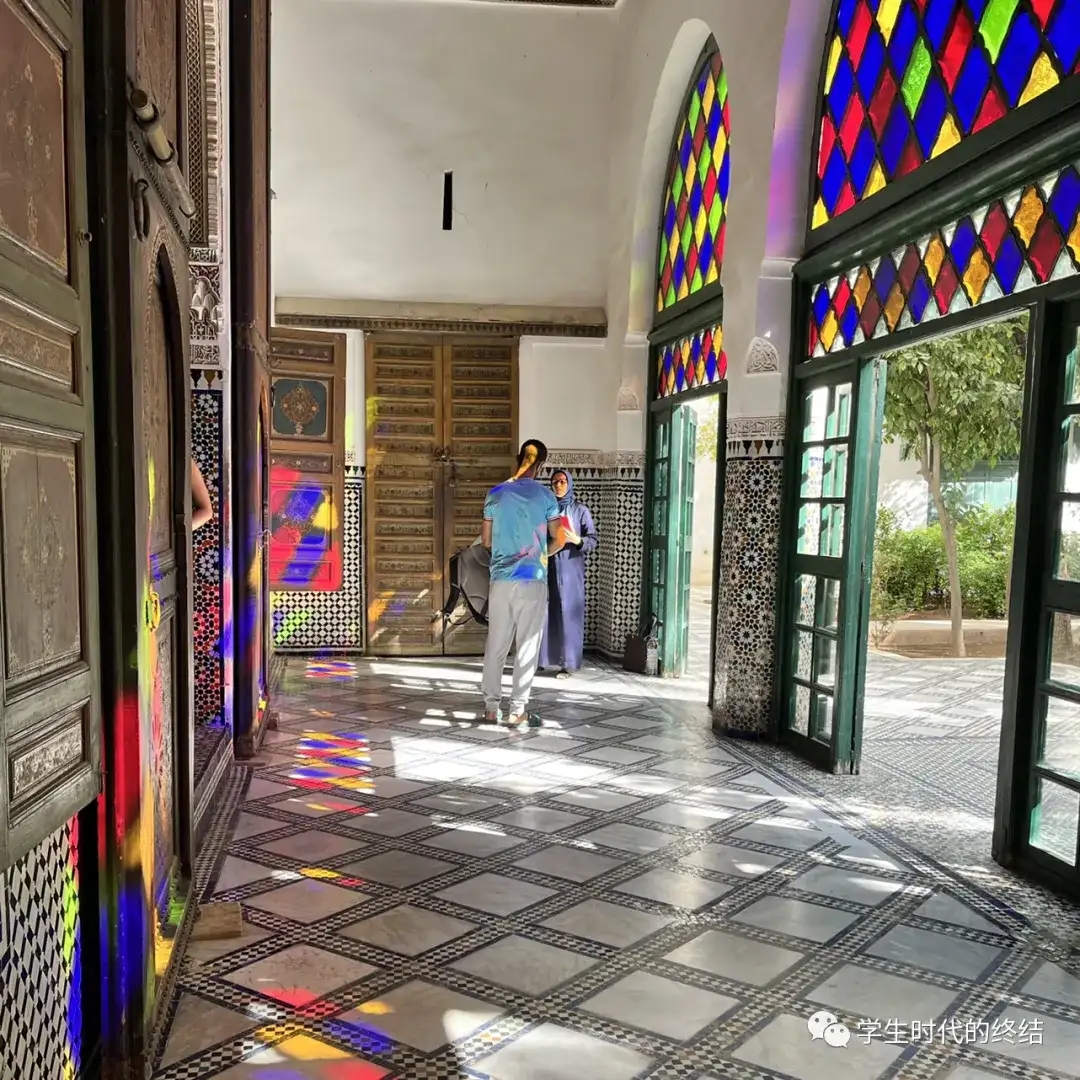 (这玻璃窗太美了,阳光变成五彩斑斓的色彩落在屋子里 总之这里极尽了你对阿拉伯繁华市场和市井生活的所有想象。与马拉喀什的繁华相对应的,是下一站菲斯的贫穷与破败,以及在那里人们为生活所做出的努力。第二天一大早,我便匆匆地奔赴车站,坐上前往北方的火车。