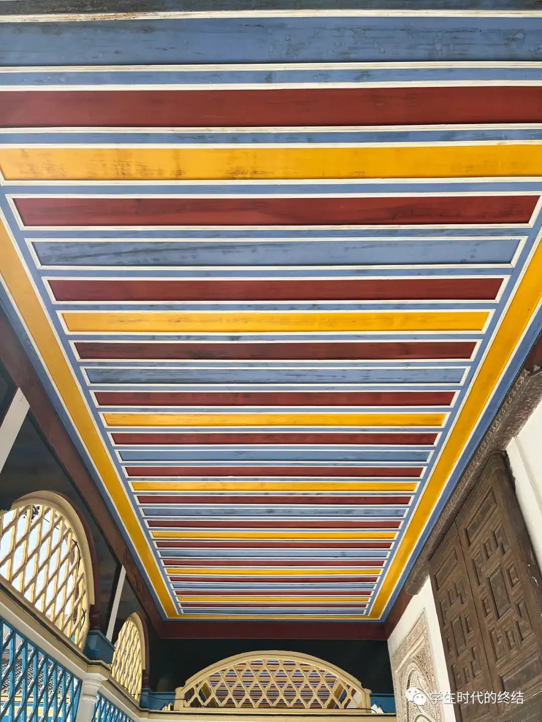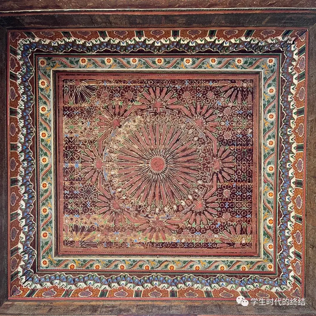 (某个房间的屋顶。建筑中到处是这种精巧的几何图案以及显眼的配色