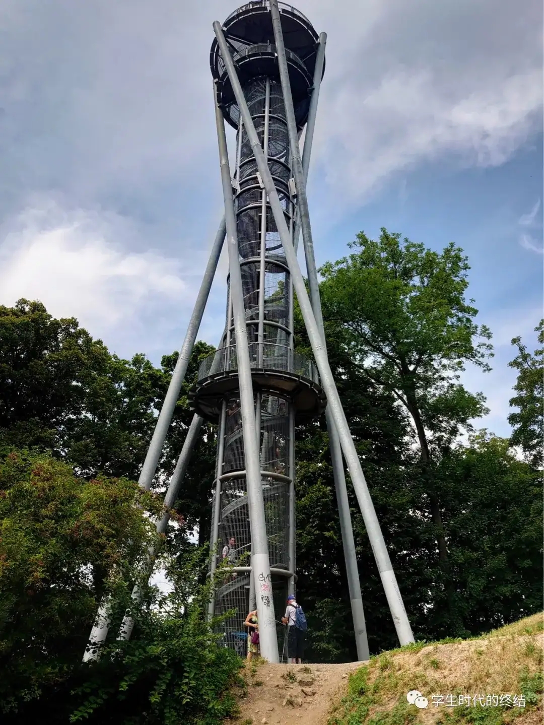 小镇另外一个著名的景点是外围的黑森林。因为里面树木颜色比较深,所以叫做黑森林(听起来像是某个中世纪RPG游戏的场景。 在森林里走呀走,爬上三百阶台阶可以走到一个观景台,再爬一百阶台阶可以登上瞭望塔,在瞭望塔顶部再走三十阶台阶可以站在塔顶。塔顶在风中摇晃,我在三十多度的太阳下已经累不成声
