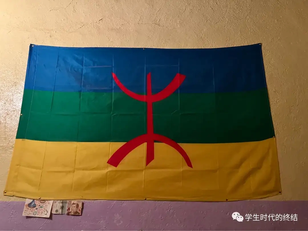 (客房的墙上有一面表示柏柏尔人的旗子,上面是柏柏语的字母,代表自由