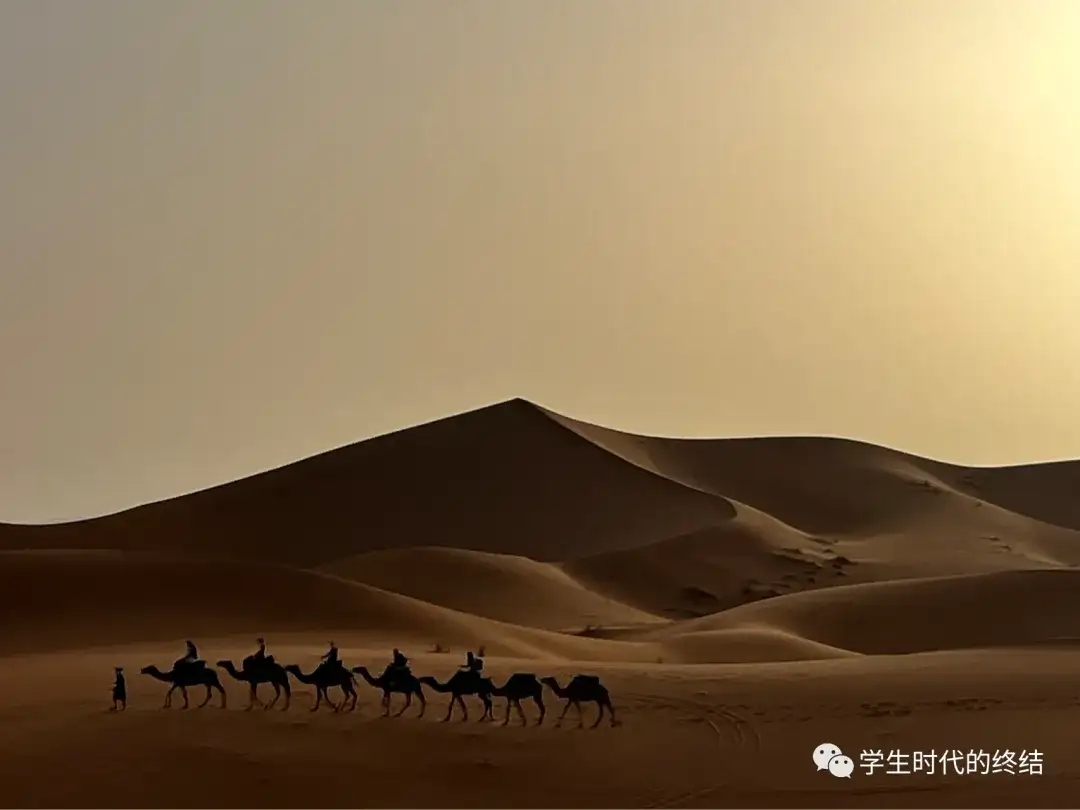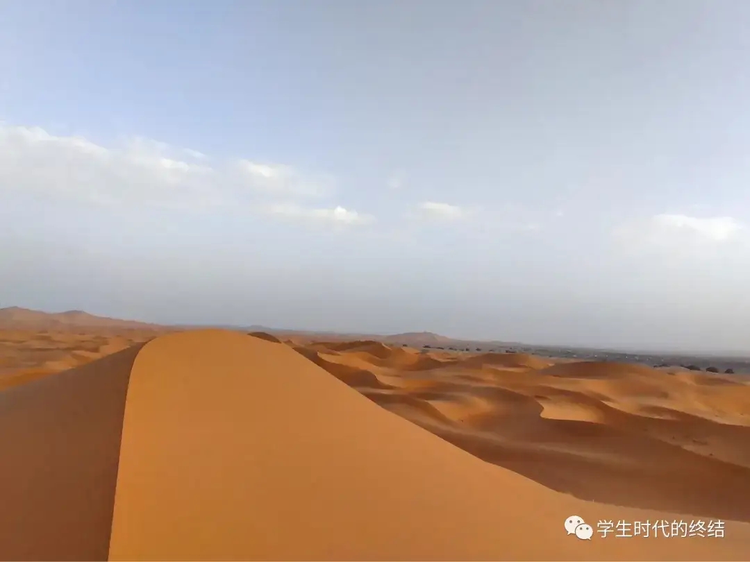 第二天早晨Houssan把我叫起来看日出,结果依然是多云的浑浊天空所以只看到颜色慢慢变亮。在沙漠住了一夜全身都没了力气,一心只想着赶紧出去。在书里在画面里看到苍茫的沙漠心生出寂寥和宇宙无垠的文艺感在沙漠里完全没时间感受,只有身处其中才能体会到环境的恶劣。然而遥远的彼岸只能看到美好的一面,在小红书或者Instagram看到的沙漠并不是真正的沙漠。柏柏尔人在这片土地生老病死,而我很感激Houssan和穆罕默德向我掀开这种生活的一角,让我知道人是多么顽强,异域的文化是多么迷人,而我曾经的世界和他们的是多么不同,又是多么狭隘。