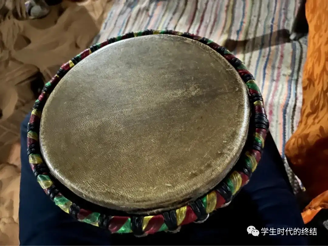 (晚饭之后两人还敲起骆驼皮做的手鼓唱歌 夜晚沙漠的帐篷里依然闷热。索性我又睡在了外面,但是后半夜疯狂打脸的大风直接把我劝退到帐篷里。