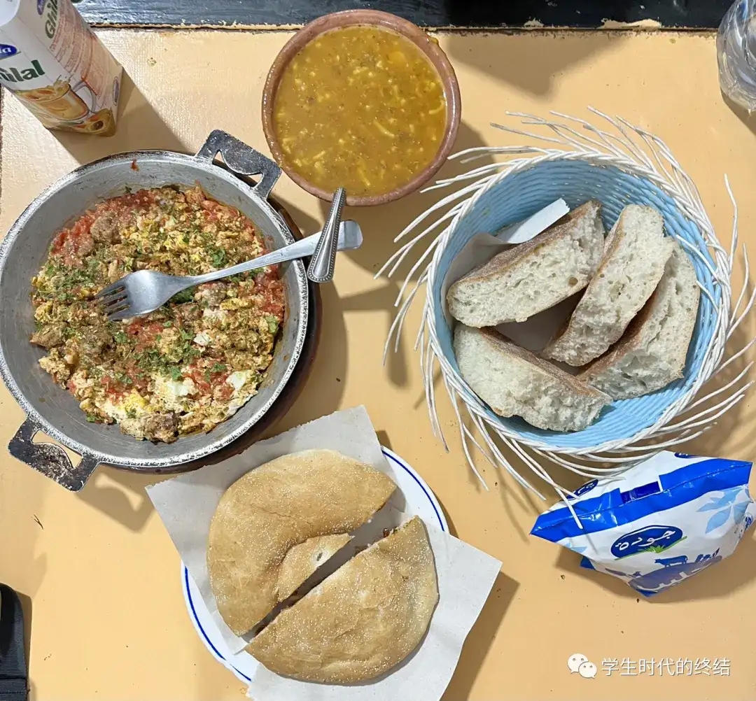 (丰盛的晚餐,不到八欧,北非蛋吃起来有点像番茄鸡蛋的味道