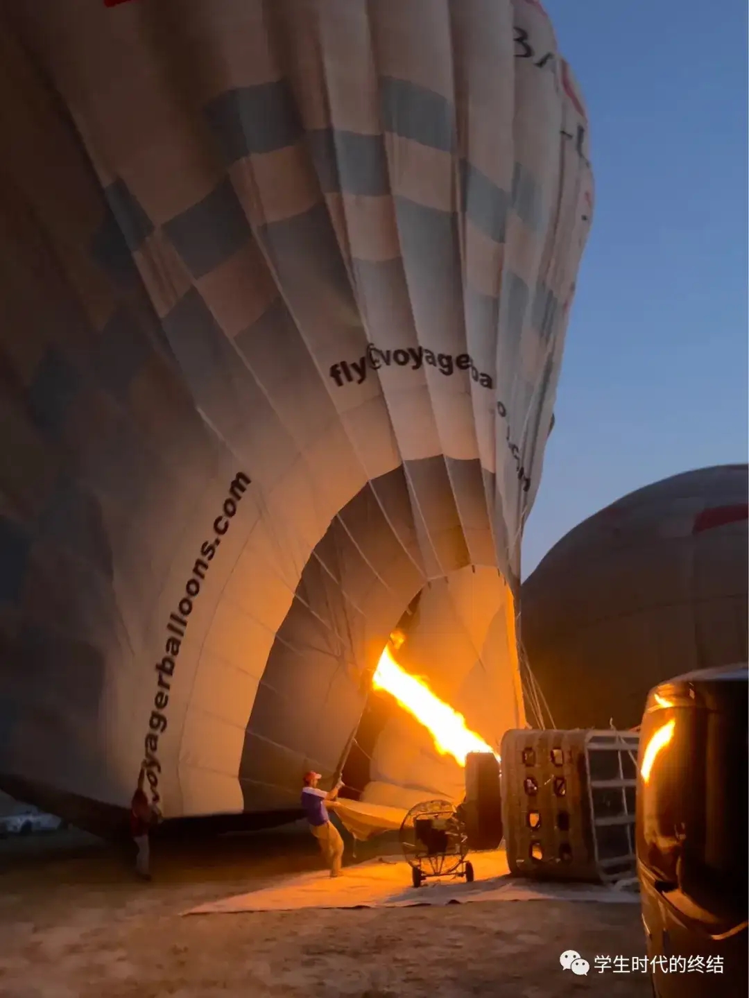 接下来向大家隆重介绍观光项目——热气球!小时候家门口广场上统一冰红茶举办活动,玩体力小游戏赢大奖,第一名可以坐热气球绕城市飞一会儿。当时奔着第一结果拿了参与奖,只得到了一张孙燕姿的海报……(那张海报现在还在我家墙上 俗话说念念不忘必有回响,时隔十三年我终于坐上了热气球!因为会在天上看日出,所以汽车四点就来接我们,在天蒙蒙亮时把大家带到一片旷野上,周围全都是正在点火的气球,忽闪忽闪非常热闹。
