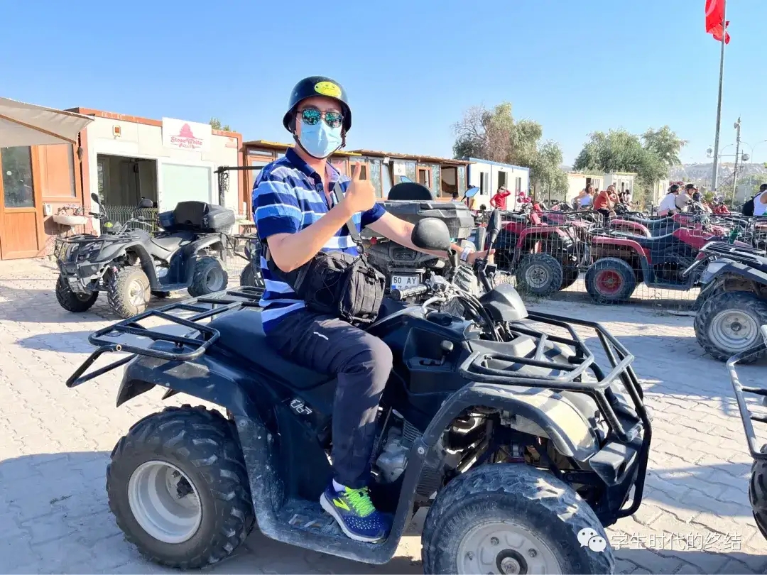 当天下午又在岩石堆里开沙滩摩托,黄昏下夕阳斜照着车轮带起的滚滚黄沙,让人误以为来到了建筑施工现场。