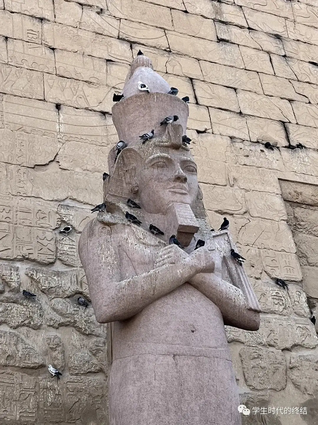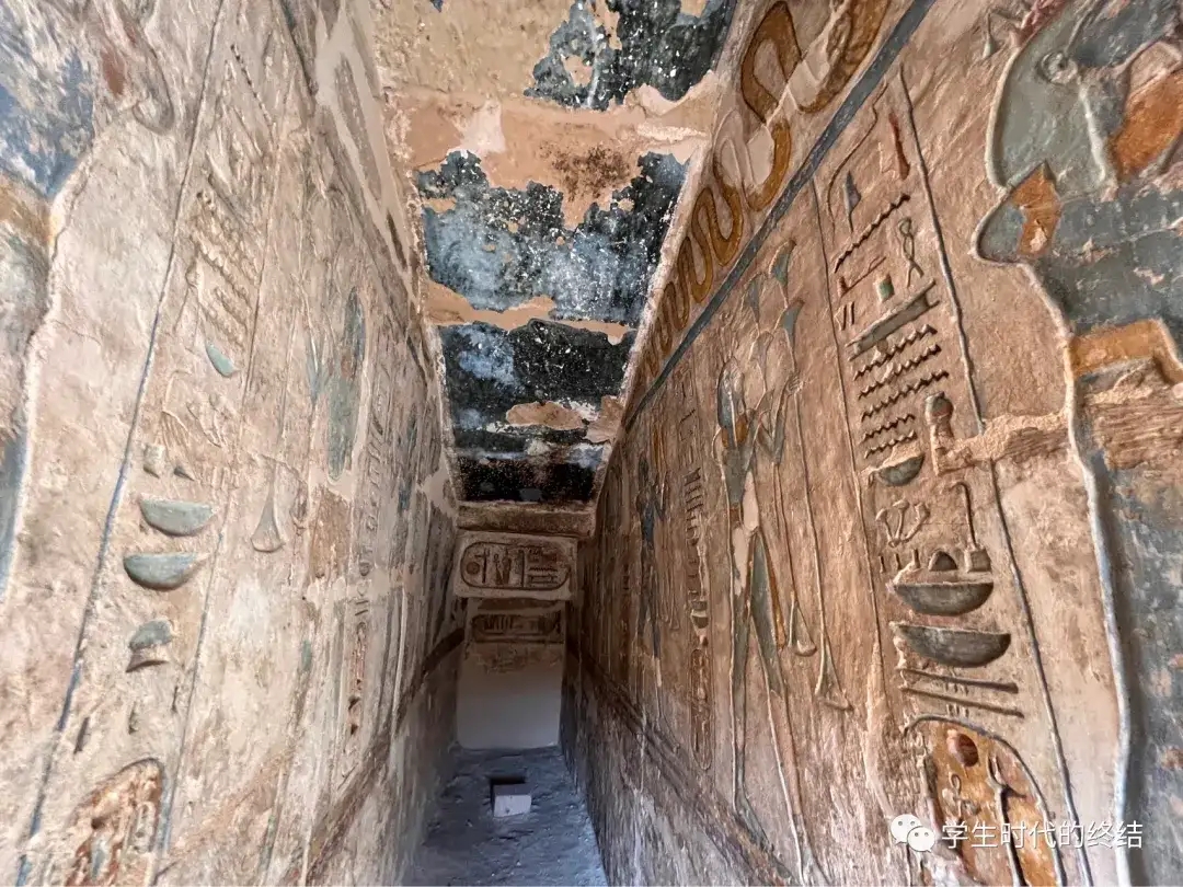(墓穴里的壁画 最后一个景点是西边的某个庙,名字叫什么已经忘记,反正我已经抱着打卡的心态,对文化什么的完全没有兴趣了。但在这里,我遇到了一位埃及学家,他向我介绍了许多当时埃及人建造庙宇和神灵的故事,讲得绘声绘色。