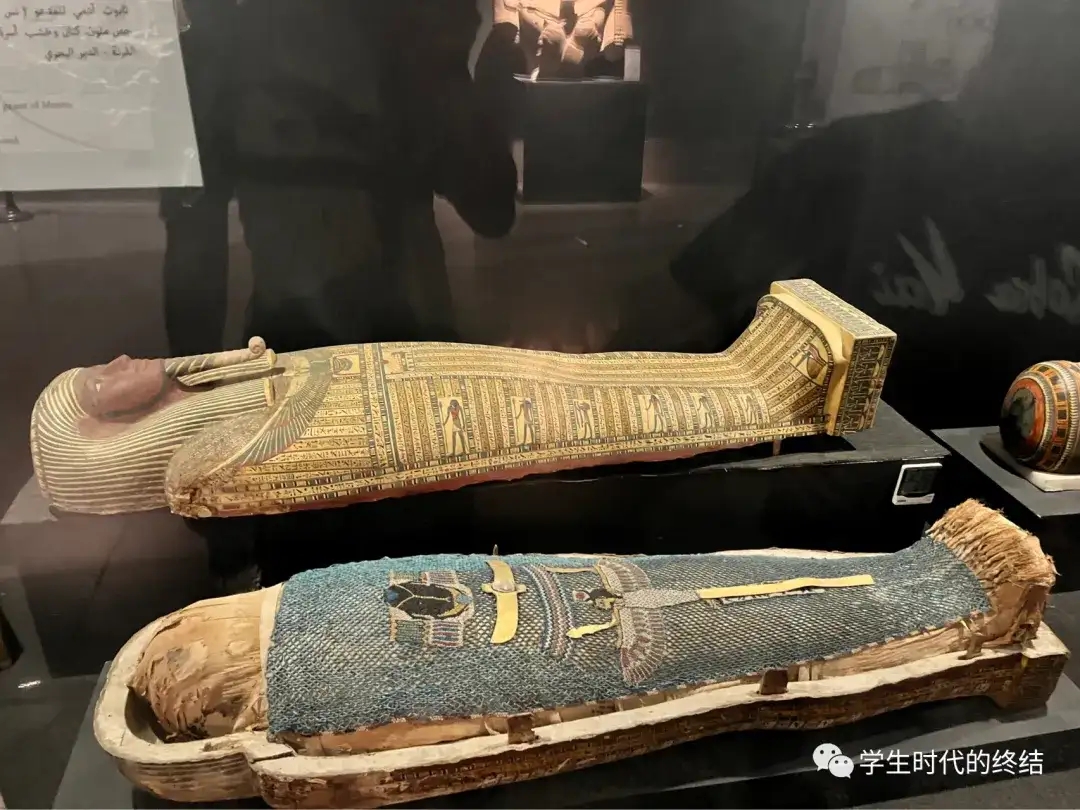 (卢克索博物馆里的木乃伊和棺材 卡纳克神庙有夜光秀,酒店泊船的餐厅老板向我推荐晚上去看。这家餐厅在酒店对岸,摆渡船会停在餐厅门口,算是商业合作。我跟老板聊了几句,老板说自己是混血,母亲是英国人,父亲是埃及人,从小在卢克索长大,去英国学了美发但还是喜欢这里的生活,就开了家餐厅。
