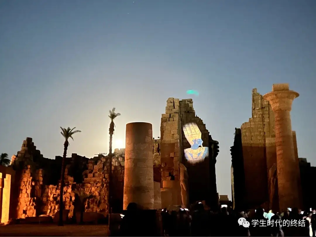 听了老板建议,晚上买了门票去灯光秀,结果就是一些图片投影在石柱上,然后喇叭模糊不清地介绍一些法老的历史,全程一个半小时,无聊到不行,我直接睡着。回去给老板反馈,老板还很委屈地道歉,说这个项目听说很有名,本来以为我会喜欢。